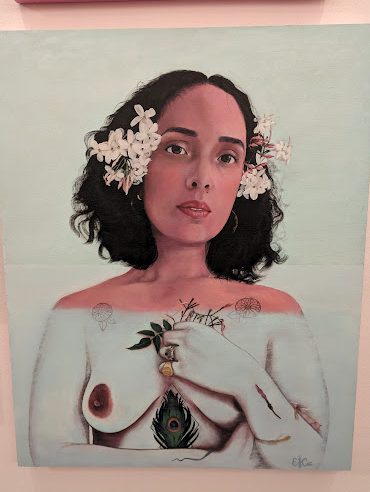 TLDR; this artist has done her homework, and seeks to create in the purest terms. She pays homage to many of the greats and strikes out on her own in a bust of herself, a breathtaking, meditative, and penetrating portrait. In the presence of these works, I felt the artists sincerity and was star struck by someone so present, so willing to experience all life’s pains and joys, and so exacting in her endeavor to depict them. Surrealism is a major influence of the works and play intermingles with themes around identity, personhood, and celebrations of biology, anatomy, and the miracle of life.