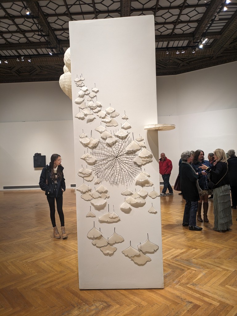 The works placed front and center of the exhibition, wrapped fully around an entire wall, were the works of Nancy Mintz. They were composed of brass and paper and so directly conveyed a simple, childlike observation of the joys that nature can bring. Look at these sweet ginkgo leaves! So cute. I loved the way she brings about her forms, the simple engineering of clouds, conk mushrooms, and webs were just delightful.