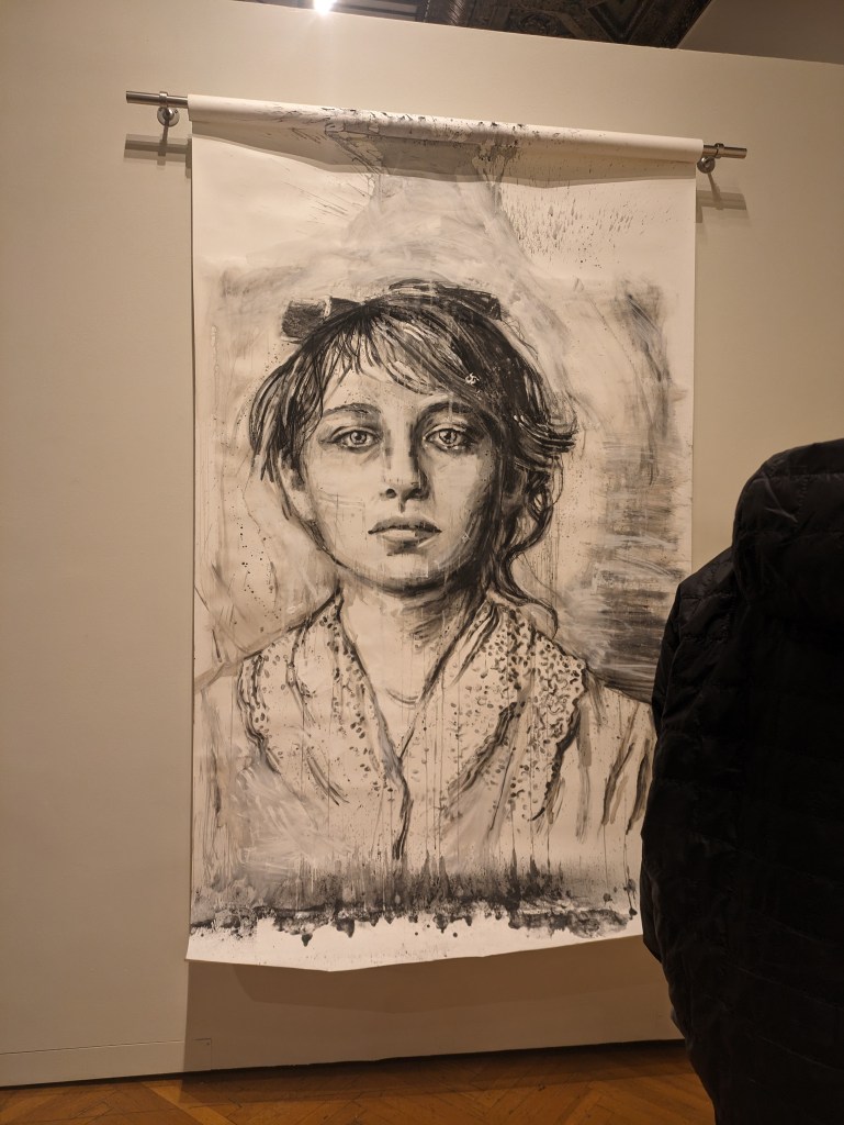 Last night was the opening of an 11 person exhibit featuring works by former pupils of renowned Chinese American artist Hung Liu. Housed in the Mills Art Museum, the works were larger than life, and the energy of show-gazers swilled and rocked the walls of the dignified palace, enlivening the joyful work with obvious love for the painter, educator, and mentor of the artists therein. I witnessed people hugging, yelling, and excitedly clasping hands. Artists took pictures in large semicircles in front of each others work, introduced their children, and shared about their lives, all while standing before their work.
