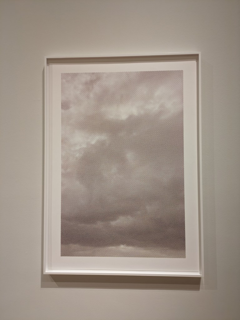 I saved my favorite for last. Nicole Phungrasamee Fein‘s work elicited excited buzzing from people crowded around her work. I waited behind two women who talked excitedly about her process for some solid minutes before I was able to get this terrible picture that doesn’t do the work justice at all. She makes these painstaking paintings using the tiniest dapples of watercolor paint, and the works can only be seen extremely close up, or fairly far away, to appreciate the actual genius of her process. Encountering work from someone so dedicated to a process that no one else could ever conceivably appreciate as much as she pains herself to actually do is something you have to respect. Her dedication to using tiny atomic particles of very pure pigment to make the things she makes is the obsessive work of someone who has a VISION, man. Plus they look a little bit like comic books, but aren’t really graphic, which I think is an interesting fusion of worlds. Appropriately named for the show title: Look Up To The Sky, this work is titled Sky, 2023.